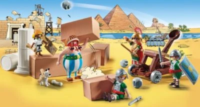 Es geht nach Ägypten! Für alle Fans der Abenteuer rund um das kleine gallische Dorf der Unbeugsamen kommen die Figuren und Geschichten jetzt für grenzenlosen Spielespaß in die Kinderzimmer. Mit dem Spieleset PLAYMOBIL® Asterix: Numerobis und die Schlacht um den Palast (71268) geht es, wie in dem berühmten Abenteuer „Asterix und Kleopatra“ aus dem Jahr 1965 nach Ägypten. Hier hat der beste Architekt Alexandrias – Numerobis – ein Problem, denn er soll in nur drei Monaten einen neuen Palast für Cäsar erbauen. Ohne Hilfe ist das Unterfangen aussichtslos. Aber die Hilfe kommt, denn die unbeugsamen Gallier sind mit ihrem berühmten Zaubertrank die beste Hilfe, so dass Kleopatra am Ende die Wette gegen Cäsar gewinnt. Mit diesem Spielset kommen der Architekt Numerobis, Obelix und Idefix und verbaubare Säulen und Steine, die zum Nachspielen der Geschichte beliebig gestapelt werden können. Die Römer-Figuren haben aber etwas dagegen und versuchen mit ihrem Katapult, die Bauarbeiten zu stören. Das Set eignet sich perfekt zum Nachspielen der Asterix-Abenteuer, oder zum Erfinden eigener kreativer Geschichten.