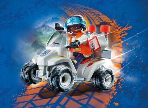 Mit den coolen Speed-Quads von PLAYMOBIL ist Action angesagt! Gerade eben ist erst der Notruf eingegangen und im nächsten Moment sitzt die Ärztin schon auf ihrem praktischen Rettungs-Quad und fährt zum Einsatzort. Ihren Arztkoffer hat sie auf dem Gepäckträger verstaut. Mit ihrem wendigen Quad ist die Ärztin als Erste am Ort des Geschehens und kann sofort mit der Versorgung der Verletzen beginnen.