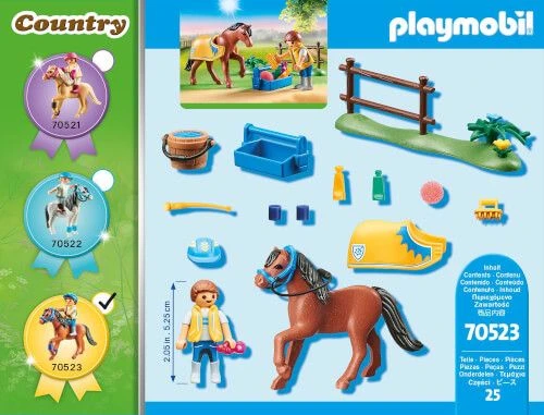 Das blaue Kistchen enthält viel Zubehör für das Pony.