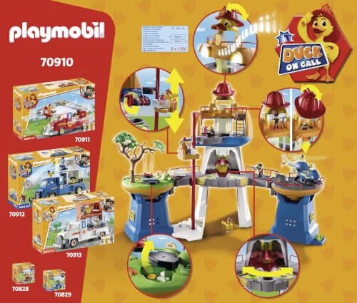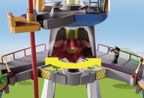 mit integrierten Licht- und Soundeffekten. Inklusive Freefall-Rutsche mit Richtungssteuerung, Kurbel-Aufzug und Landeplatz für den im Set integrierten Polizei-Hubschrauber. Die geheime Kommandozentrale in einem der kleinen Türme und der Spielplatz mit Teich, Baum, Schaukel und Geheimversteck bieten ein spannendes und abwechslungsreiches Spielerlebnis. Maße: 58,5 x 50 x 18,5 cm (LxTxH)