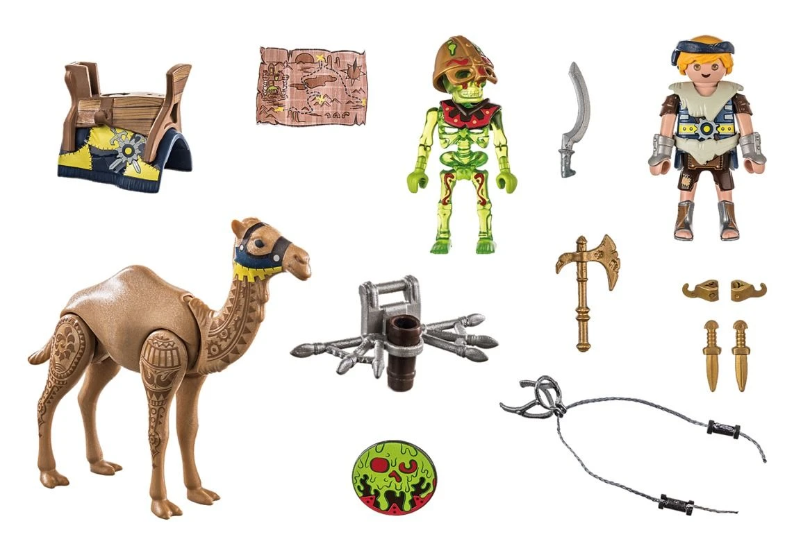 Wie wird die Konfrontation ausgehen? Mit spannenden Figuren, vielseitigen Funktionen und jeder Menge Details laden die Sal’ahari Sands Spielsets von PLAYMOBIL zu aufregenden Wüstenabenteuern ein. Die Satteltaschen des Kamels bieten Platz für verschiedene Utensilien.