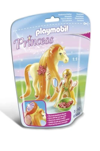 Princess mit richtiger Haarbürste zum Kämmen der seidigen Mähne und stylischen Rosenblüten-Haarclips zum Schmücken und Einflechten – auch für dich selbst! Ab 5 Jahren.