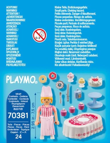 mit Konditorin und verschiedenen Köstlichkeiten.