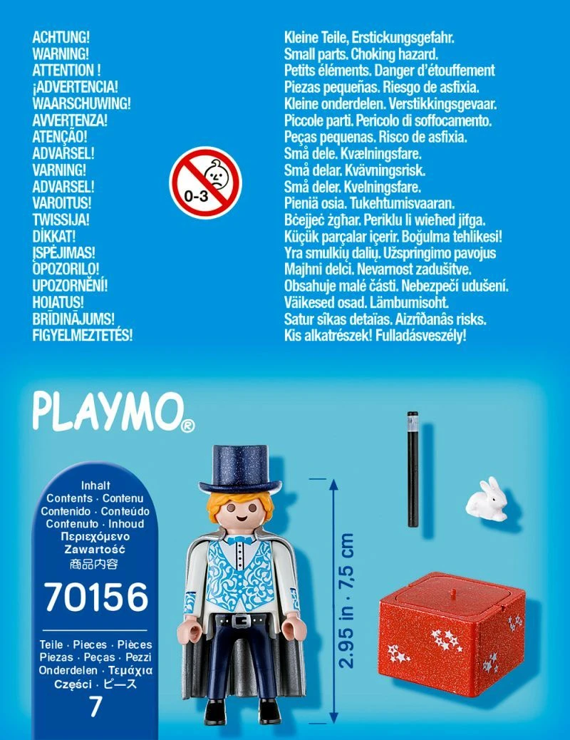 Für seine nächste große Show übt der Zauberer einen neuen Trick ein. Hoffentlich klappt es und das Kaninchen verschwindet nicht nur, sondern taucht auch wieder auf. Übung macht den Zaubermeister!PLAYMOBIL® Special Plus Sets garantieren extra viel Spielspaß zum kleinen Preis. Zum Sammeln, Spielen und Verschenken!